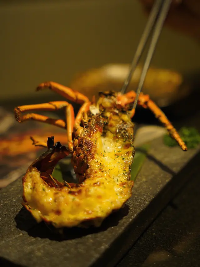 開邊龍蝦外層被大量芝士包圍烤得金黃色,再用火槍灸燒過散發濃烈芝士牛油香氣🧀~燒過嘅龍蝦口感紮實,加上自家製醬汁啖啖肉,夠惹味🤤。