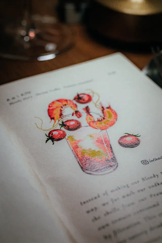 餐廳主打ᴏᴍᴀᴋᴀꜱᴇ形式的ᴄʜᴀᴏꜱ ᴍᴇɴᴜ,分五道或七道菜,價位親民,五百多元即可享受五道創意料理。筆者當晚選了五道菜,夏季星期四更送上一杯ꜱᴀɴɢʀɪᴀ。前菜包括刺身串,包括:帶子、魷魚、橄欖等,味道較重主要是佐以的ꜱᴀɴɢʀɪᴀ酒之用。今天特別放鬆的油甘魚薄片配青涼湯及鹽昆布,酸鹹開胃;西班牙拼盤集合番茄白鯷魚多士、帕爾瑪火腿、中式潤腸及ᴄʜᴏʀɪᴢᴏ,款式豐富。