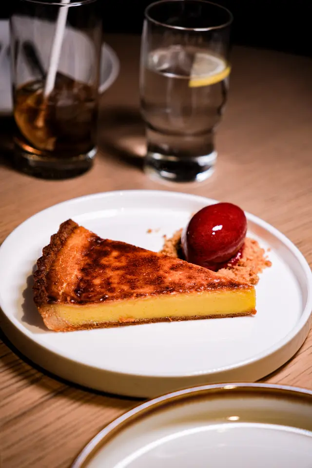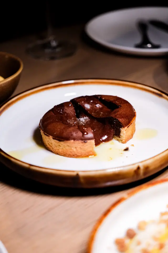 甜品方面的【Hot chocolate tart】與熱情果雪糕搭配,表面淋上Nutty香氣橄欖油,朱古力一切開,立即流心,超高質𖤐´-