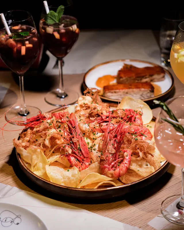 必試【Formentera Carabineros ($498)】!意大利直送紅蝦,搭配酥脆鮮炸金黃薯片和太陽蛋,半生熟蝦肉超鮮味將蝦頭蝦膏擠出滴在薯片上,鮮味爆棚!有【Daniel Sorlut oyster($79/pc)】新鮮生蠔表面再放上西班牙火腿,海洋與陸地風味完美結合,在紙袋裏煙燻過後視覺同味覺享受都滿分!而【Spanish whole seabass ($560)】西班牙整條海鱸魚超鮮甜零腥味;【Lobster juicy lobster rice "caldoso" ($340)】 龍蝦鮮味完美燴入Paella,整體海鮮菜式都水準好高!
