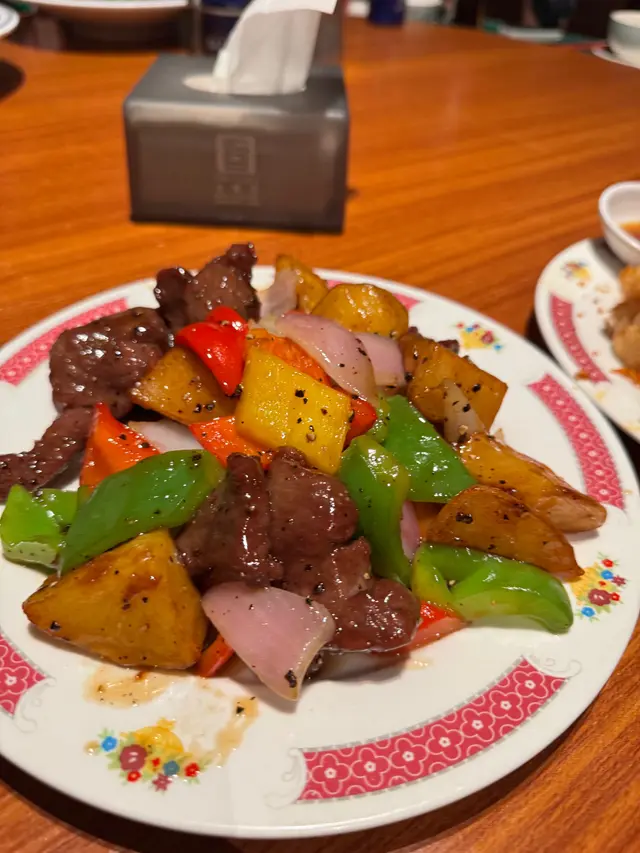 ✅黑椒蜜餞薯仔牛柳粒,薯仔好食甜甜地有蜜糖味,牛柳粒就偏咸。