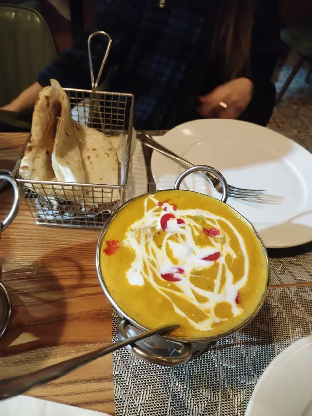同朋友特登嚟試,叫咗白果仁汁咖哩蝦,咖哩雜菜,一份原味薄餅,一份蒜蓉味,仲有一份牛油味,炸芝士。