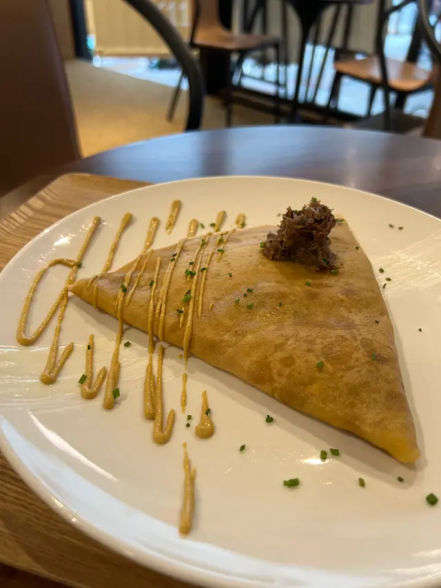 呢個係可麗餅係鹹點,餅底煙韌軟熟,蛋味香濃,裡面包住超多鴨肉,估唔到同可麗餅咁夾,真係意外地好食,每一啖都有好飽滿鴨香味又唔會覺得膩口,值得一試👍🏻