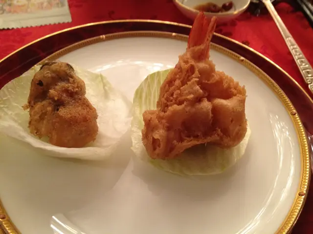酥炸中蝦拼酥炸生蠔: 略嫌炸粉過厚過火,只覺一般.