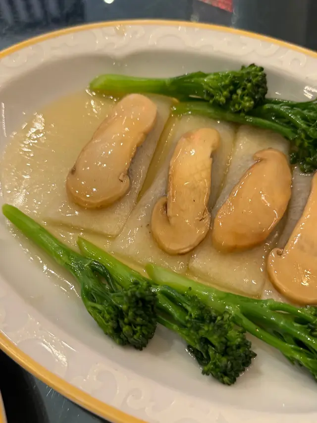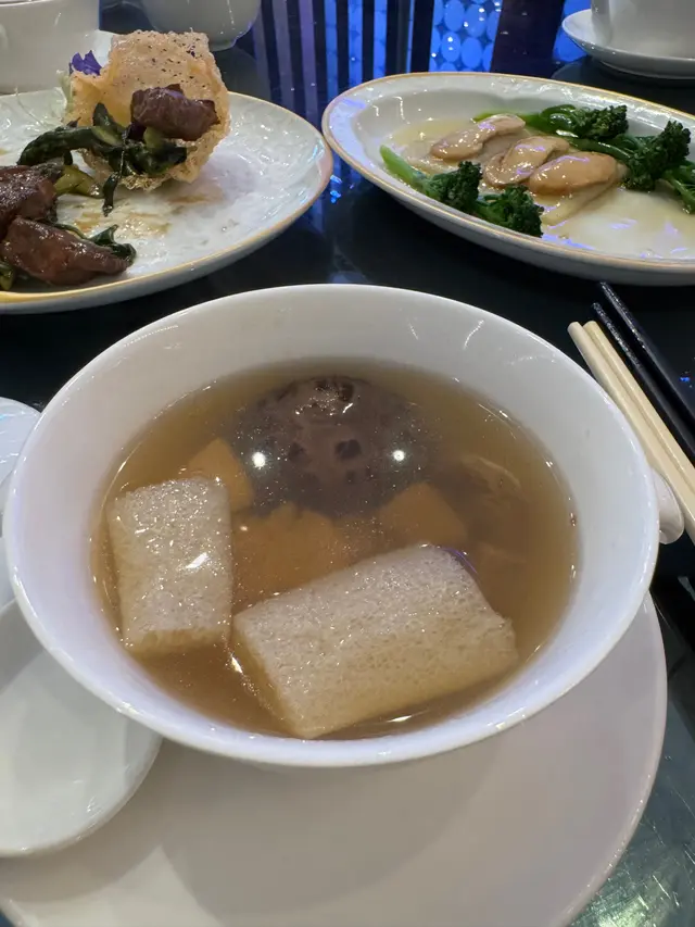 竹笙和切開片的松茸浸在高湯中,竹苼內餡是松茸和菌粒,味道清淡,素食者會好中意