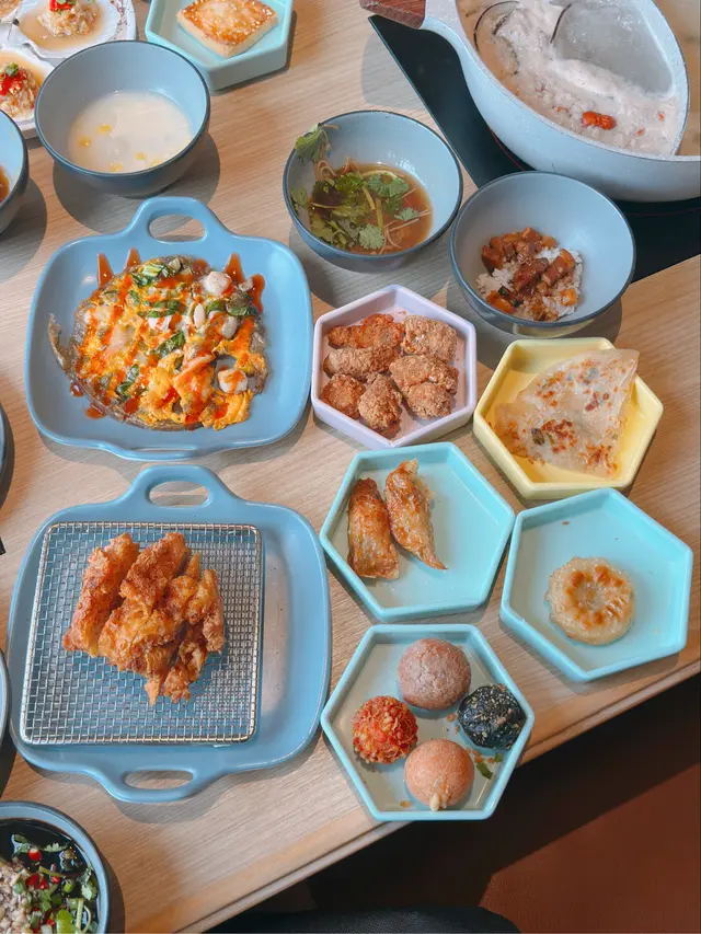 自助吧🍽️套餐包含💰有炸物🍠夜市烤香腸🍖台式滷小排骨、藥膳雞爪🐓水晶糕、山見滷肉飯🍚山見麵線、碗仔翅、蔬菜區🥬🌽🎃菇菌🍄🟫🍄雞蛋🥚丸類🍢🦀麵食🍜🐟海蜇頭🪼特別啲有羽衣甘藍菠菜粉果🥟餡料飽滿清甜😛但皮太厚🥺