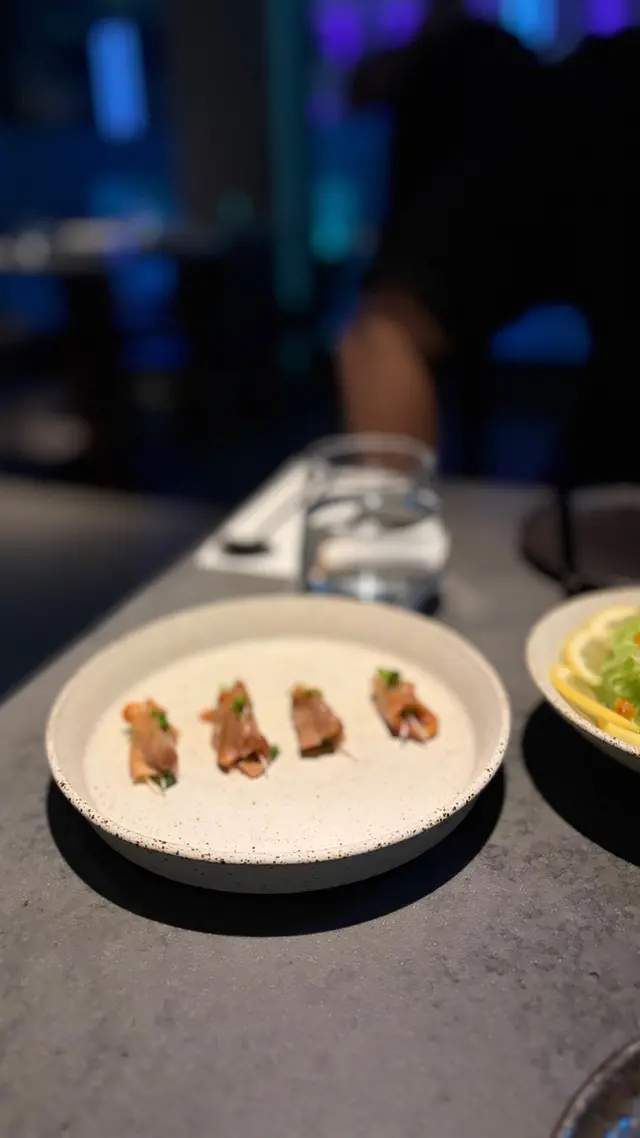一入口,魚生嘅軟糯同京蔥嘅爽脆形成對比,秘製醬汁將鮮甜味完美昇華,口感同味道層次都好豐富