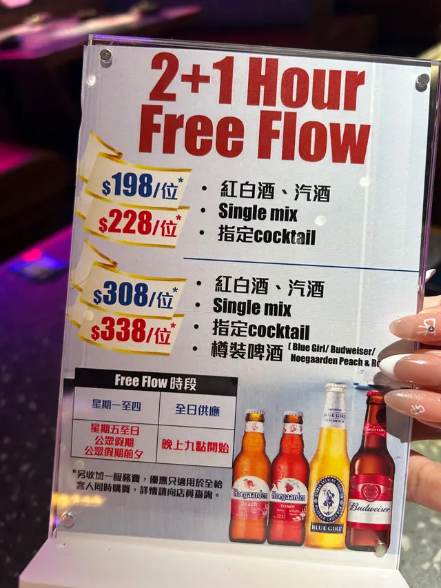 而家仲做緊飲嘢,2+1hour優惠,一個人都係二百幾蚊,加埋現場嘅燈光非常之昏暗。個vibe非常之好,如果大班朋友仲可以嚟飲嘢唱歌!
