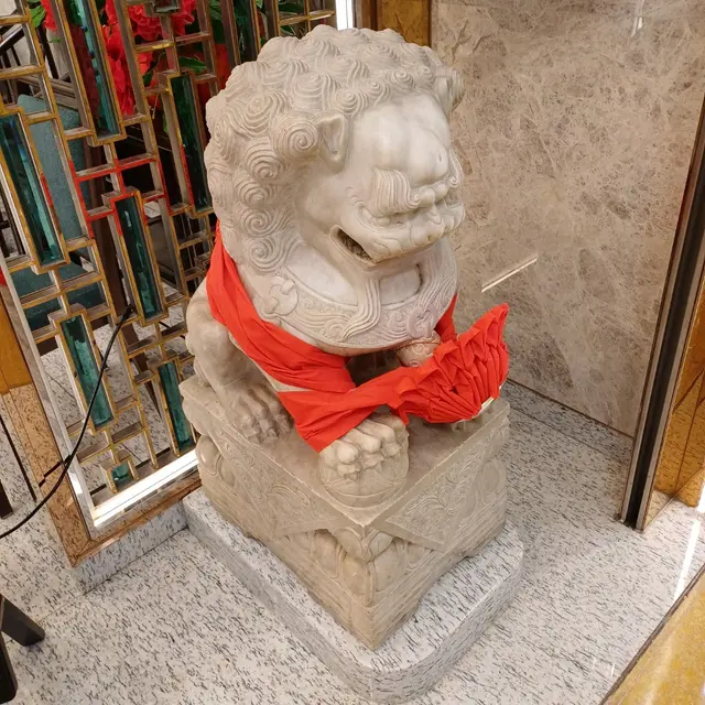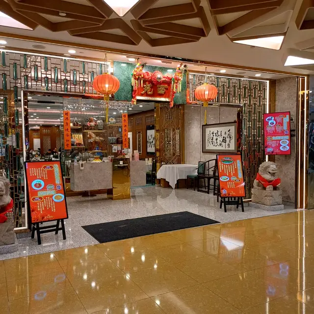 酒家是最傳統的中式裝潢,門口張燈結彩,兩隻石獅子左右護法,