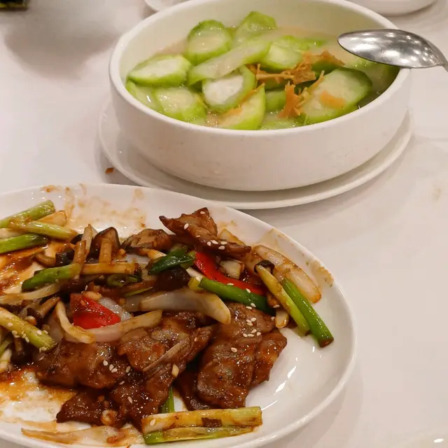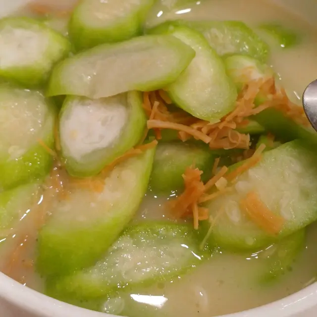 🥒🥒🐠🐠勝瓜即是絲瓜,合時的食材,配上瑤柱魚🐠湯,清淡的瓜變成精美的菜式,瓜甜湯鮮,先飲兩啖魚湯,滋潤下夏天的熱暑,出奇地滿足,勝瓜是選用最嫩的瓜,完全沒有渣,清香鮮甜,是夏天的好菜品。👍