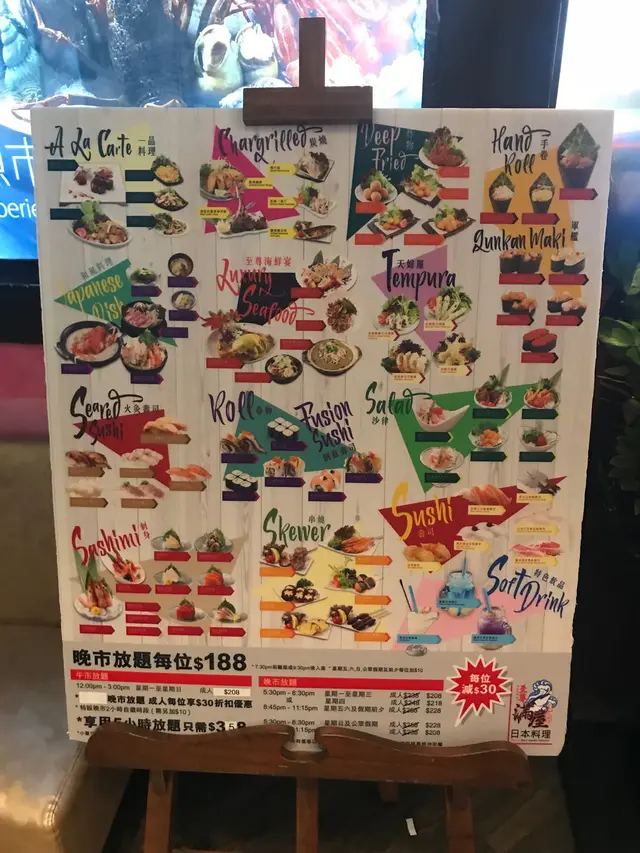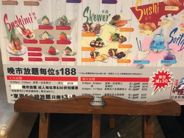我係食中午時段星期一至日都係 $208+10%,而其他時段價錢大家可以睇下以上張圖,晚市都抵食,每人有$30折扣優惠。