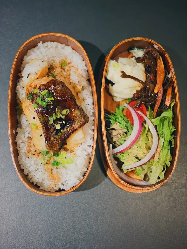 沙律菜和木耳配上酸梅醬汁,吃着清爽,減去魚皮的油膩感。那個薯蓉泥亦都好香滑!好有心機的便當