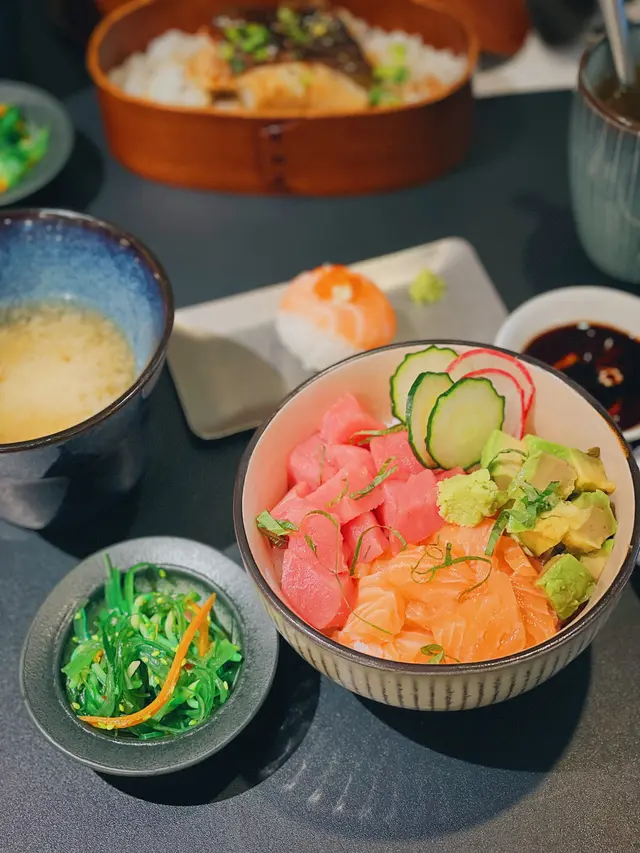 鋪滿着吞拿魚和三文魚粒,$100唔使都幾足材料。兩份魚肉沒額外調味,最初擔心味道好寡,巧妙地利用牛油果的油脂和creamy口感,吊出魚生的鮮味,加埋芥末豉油伴均一起吃,一抹清新輕盈!