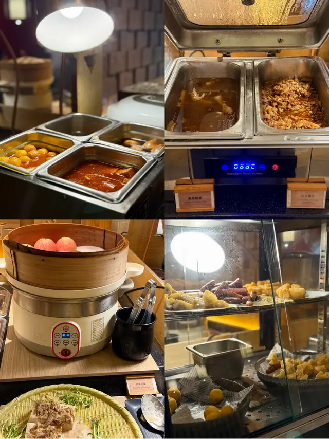自助吧 台灣熟食(滷肉飯、鴨血、台灣腸)、蔬菜(估唔到有菠菜苗揀&羽衣甘、心內美蘿蔔、蟲草花等,好多款菜揀!)、甜品(杞子芋圓Q彈、Häagen-Dazs朱古力雪糕濃滑)、台式飲品高質(黑糖龍解茶、梔子花綠茶等)都係可以任飲任食,好多野揀!