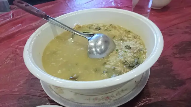 小的本以為老伴與咱家都喜歡椒鹽鮮魷,然而他卻搖頭否定。反而點了一窩蠔仔粥。蠔仔粥上場是一池的湯水,以為材料不足?原來正宗潮式吃法,湯與米飯總要貌合神離,讓沉在底部的白飯依然保留一粒一粒的圓備自足。蠔仔粥的味道不錯,湯汁透出絲絲的蠔腥氣色。在炎熱的天氣下,一碗熱騰騰的蠔仔粥下肚,即使熟食市場有空調設備,卻只如杯水車薪般吃得咱們個個汗流狹背。