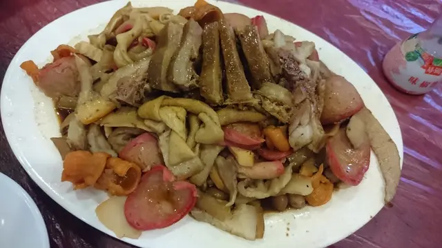 雜菜粉絲煲內附魷魚,讓粉絲煲更清香鮮甜。雖說不上精彩紛呈,卻做到價位相配,賣相健康。可惜雜錦滷水拼盤卻是全餐的最大敗筆,說得上雜錦,可謂包羅萬有。然然,精明的老闆卻從中取巧,把低價滷味無限呈獻,而且更是奉上頭頭尾尾的下欄貨!平價紅腸與肥到顛的所謂腩肉佔位最多。然後再舖上雜亂無章的些許鵝腸、生腸、豬頸肉等次貨。小的孤陋寡聞,茫然不知豬頸肉、肥腩肉等也能加入滷味之行列。然而大大的一碟滷味,傳統的鵝片、掌翼、腎等一一久奉。咱們彷彿是在雜亂無章的一碟下欄菜中尋食,要知道雜錦其實是劣品,還是正正規規地點選指定拼盤好了。滷味的味道亦是不足,淡淡的似乎未夠入味。