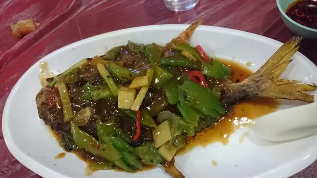 涼瓜䱽魚弄得甚具鑊氣,黃𩶘䱽先經滾油炸過,然後才回鑊與涼瓜共舞。雖然外表香鬆,在濃味底下仍能吃出䱽魚已久經冷藏。不過百元以內的一碟,咱們就不該要求太高了罷!