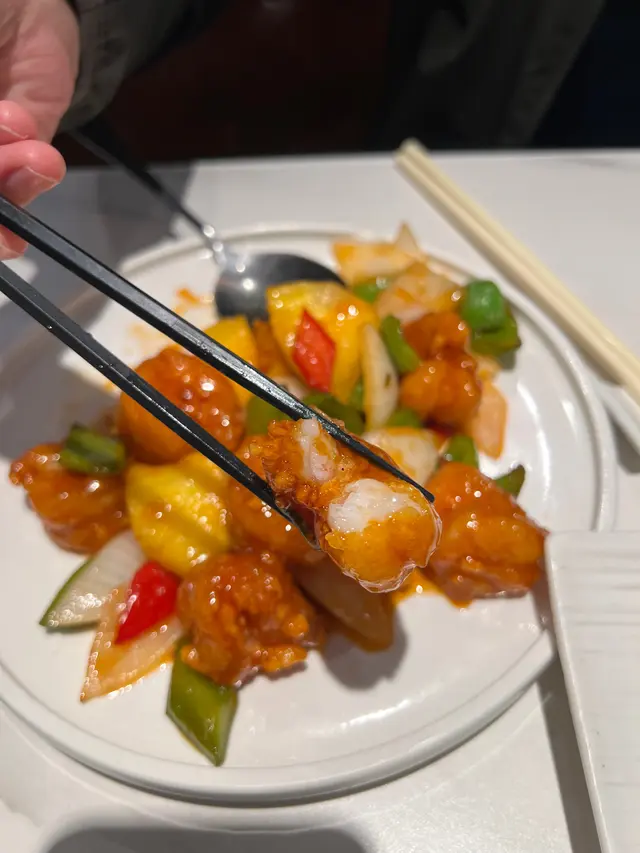 不得了!咕嚕蝦球的粉漿非常薄,而且香脆!
