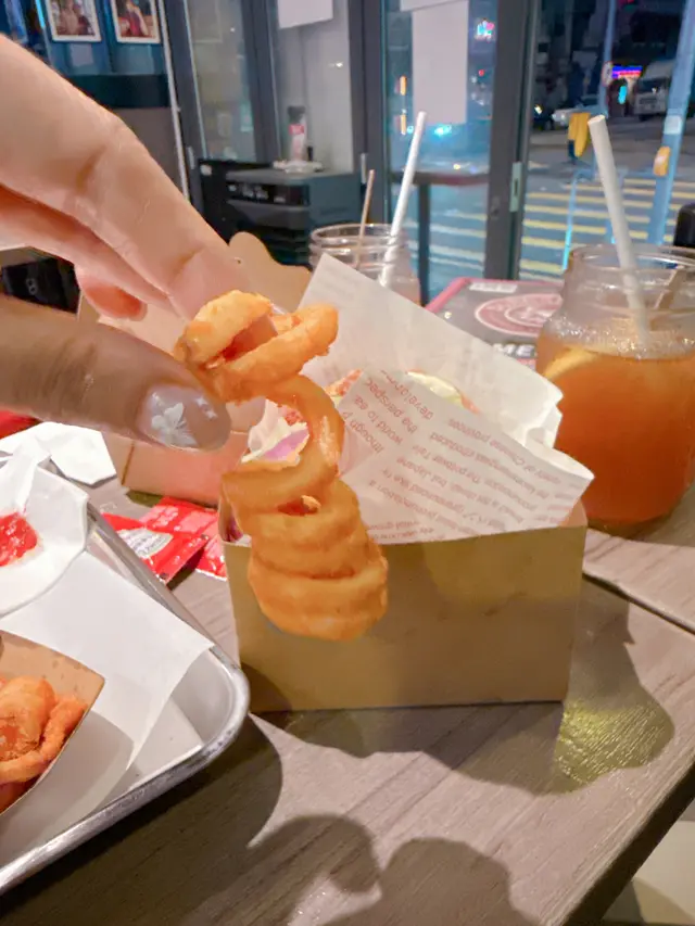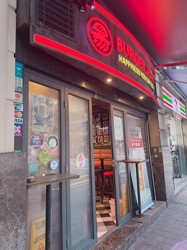 去睇舞台劇,係灣仔附近搵食,發現係酒吧街有間食漢堡包小店叫「Burger Joys」走工業風設計配霓虹燈牌,幾有美國風格,牆上掛滿不同朋友食漢堡包的照片又幾得意。
