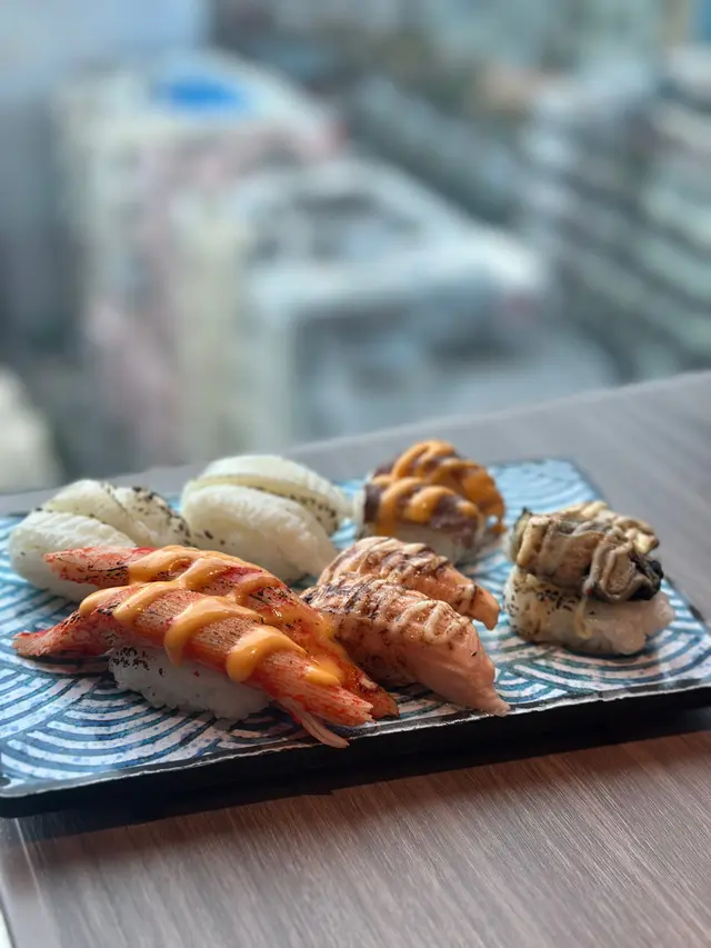 、特濃芝士燒醬牛肉壽司、火炙三文魚、火炙醬燒蠔壽司、三文魚蓉蟹柳小卷)