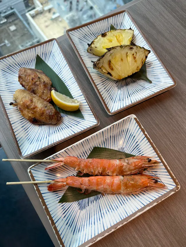鹽燒雞翼、鹽燒牛舌同鹽燒海蝦,全部都係燒得剛剛好,鹹香口感好過癮!