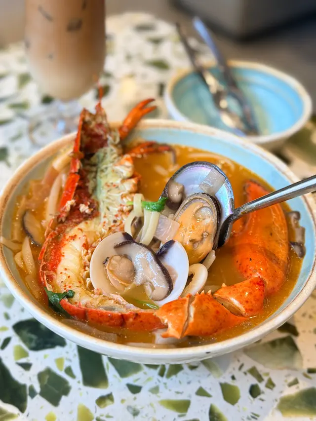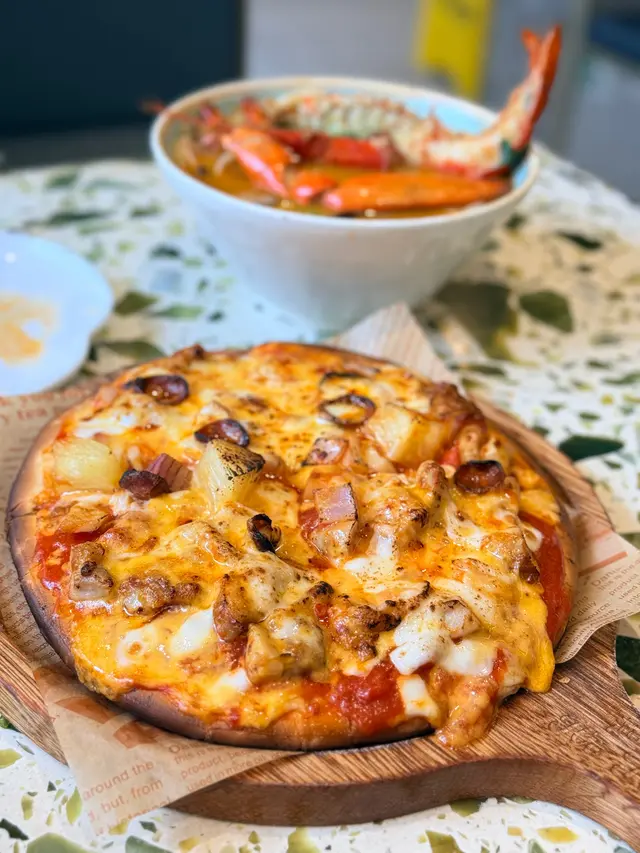 有龍蝦又有Pizza, 抵食, 快靚正 Clareylee等级42025-11-06121 浏览 关注 喺新蒲崗做完野.同朋友食Lunch見到呢間餐廳裝潢新派舒適仲有不同菜式選擇估唔到龍蝦都有得食✨香煎波士頓龍蝦海鮮湯扁意粉加入魷魚.蜆.青口仲有大大隻開邊龍蝦肉質爽彈好新鮮個湯底真係無得輸.濃郁嘅龍蝦味1✨菠蘿紅茄三層芝士焗豬扒飯即焗熱辣辣.豬扒大塊又厚切滿滿芝士.份量十足✨奧爾良烤雞pizzaPizza即叫即焗.超多配料批底厚薄適中.有驚喜午餐有餐湯跟熱飲 / 可加錢upgrate特飲同甜品✨凍提拉米蘇香濃奶茶✨木糠布甸✨乾果乳酪杯今餐抵食.性價比高以上食记乃用户个人意见 , 并不代表OpenRice之观点。赞好分享有龍蝦又有Pizza, 抵食, 快靚正 茶舍 (景福街) https://s.openrice.com/QrLT0C1vV00检举 张贴 评分5味道5环境5服务5卫生5抵食用餐日期2025-11-05用餐途径堂食用餐时段午餐