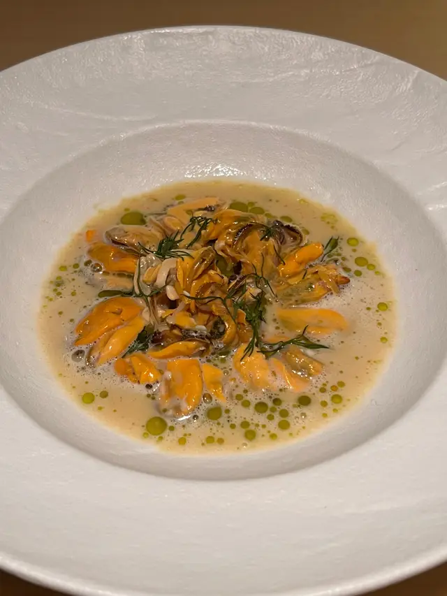 首先是前菜,一道色香味俱全的青口,鮮嫩的青口搭配濃郁的湯汁,散發著陣陣海洋香氣,令人回味無窮。這道前菜不僅口感彈牙,還帶來了清新的海味,為整頓餐點拉開了完美的序幕。