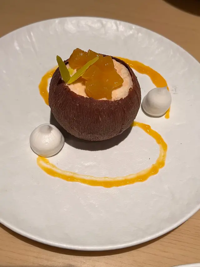 最後的甜點也絕對是亮點。那個巧克力布丁外表堅硬,內裡卻柔軟綿密,搭配上香甜的柑橘醬,簡直是絕妙的搭配。