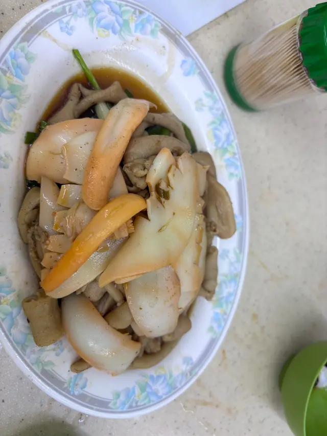 鵝腸與墨魚拼盤視覺尚可,但鵝腸偏韌,缺乏爽脆口感,墨魚普通,鹵水汁偏淡,未能入味。🥢芽菜底未有提味作用,整體平平無奇,未能展現潮州滷味精髓。