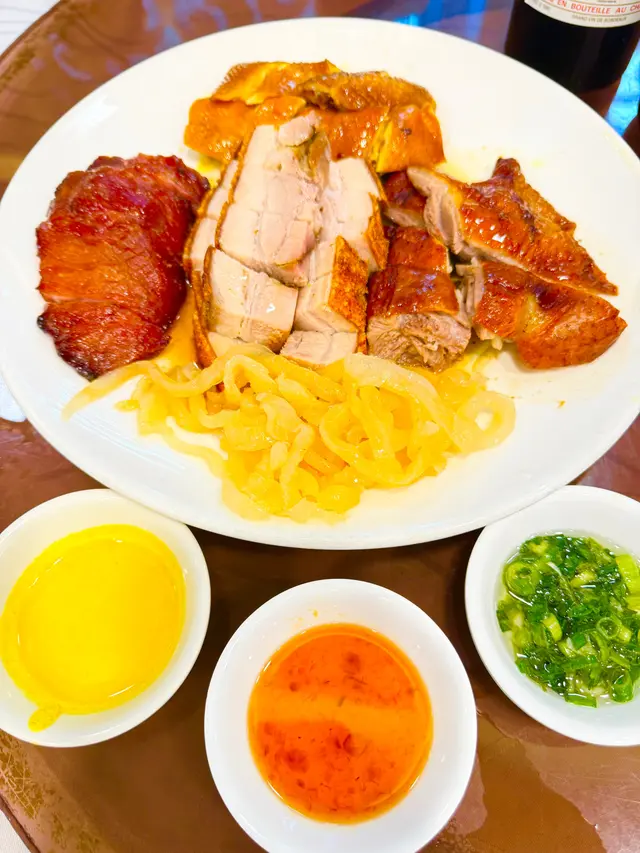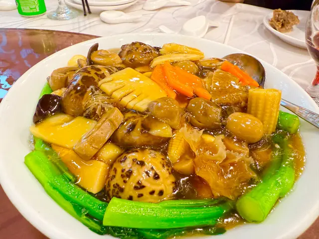 昨晚的出品我們都覺得十分滿意。頭盤是鴻運金豬拼盤和上湯焗龍蝦伊麵,都不比星級餐廳差;碧綠炒龍躉球更讓大家吃的津津有味;水晶貴妃雞又是讓Chicken Lover不枉此行。至于另外加的四個齋菜,味道和口感也能讓人回味無窮。