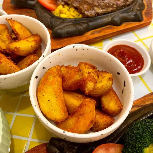 汁可揀黑椒汁/蒜蓉汁,未淋醬汁已經滋滋聲好過癮!有齊肉眼、豬扒、雞扒、牛脷同廚師腸好多款,雞扒好嫩滑,牛脷有口感,仲有脆卜卜嘅薯菜,絕對係飽肚之選。