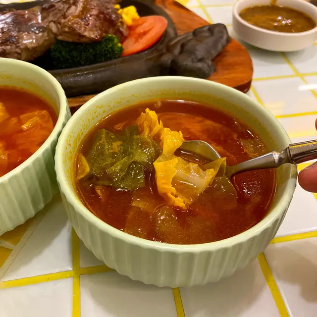 本身諗住買份雞蛋仔食,見到人哋食鐵板又幾吸引,一於試試佢!套餐有埋薯菜、紅湯同餐飲,又幾抵食噃~