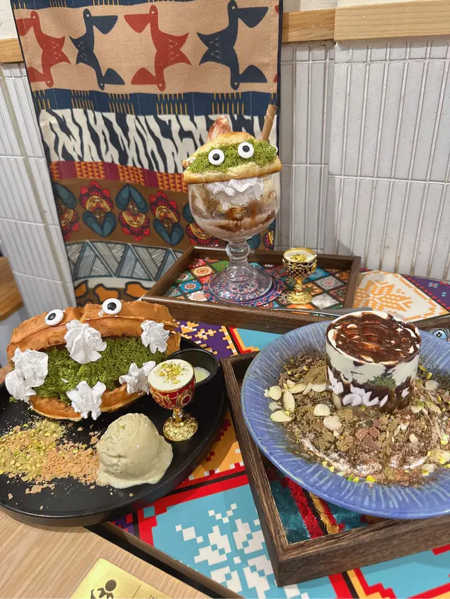 一上枱已經好令人興奮,牛角怪超可愛,脆脆既牛角包裡面係開心果夾心,一杯仲有齊開心果雪糕、雲尼拿雪糕、牛奶雪糕,再配埋開心果醬,味道好香濃