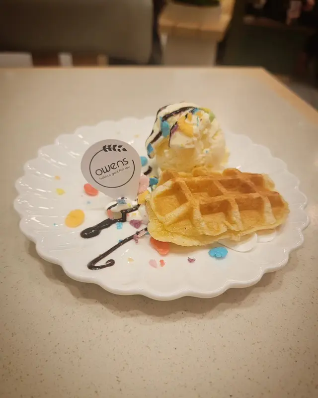 窩夫外脆內軟,搭配雪糕,簡單但好食,甜而不膩。