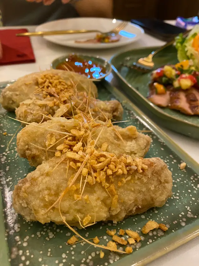 我自己一個就叫咗個炸蒜蓉牛油雞翼同埋叫咗個蝦仁豬肉卷。