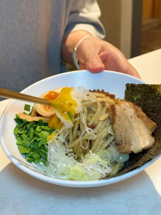 1️⃣先戳破日本蛋黃,攪拌享用撈麵原味