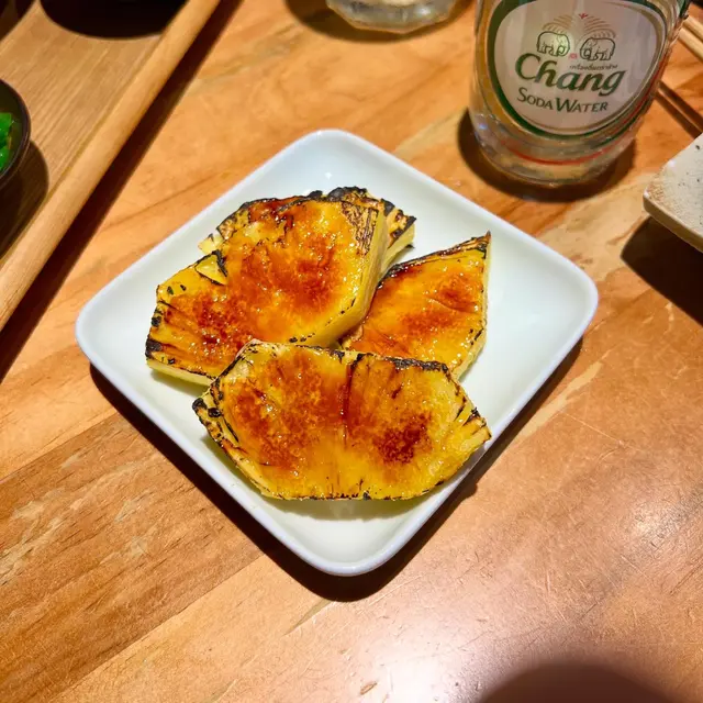 落單果陣老闆推介燒菠蘿,聽佢好有信心咁介紹話好好食就即左一份試下!的確值得咁有信心的。一上枱就望到菠蘿燒到金黃,表面覆蓋焦糖糖漿,十分焦香!🍍果肉熟得恰到好處,鮮嫩中帶點軟糯,天然果香濃郁到爆!份量雖小,但每口都充滿幸福感,作為餐後清新收尾真係好正,食完仲想encore。