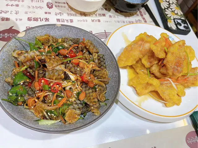 前菜一定要叫佢!魚皮處理得超乾淨,冇腥味,浸喺自家調製嘅香辣汁裏面。口感 爽脆到彈牙,辣度係大眾都接受到嘅香辣,唔會死辣,反而帶啲麻香同蒜香,超級涮嘴!食落涼浸浸,係絕佳嘅開胃小食,送啤酒一流!