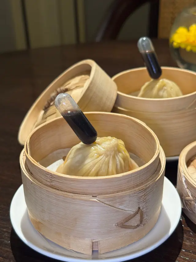 巨型的小籠包,皮薄餡料豐富,而且玩味十足,用上吱吱泵,將香醋泵入小籠包裏面,夠晒創意,蟹粉配鮮肉餡料,鮮味十足