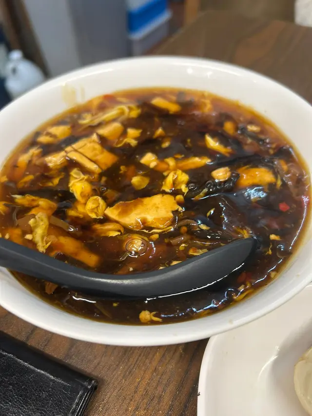 酸辣惹味不會好辣, d料勁多, 有豆腐、木耳、肉絲、豬紅 , 每條麵都沾到酸辣湯汁非常惹味.