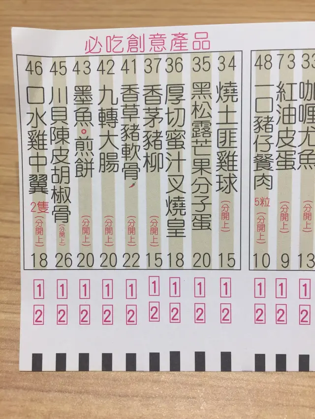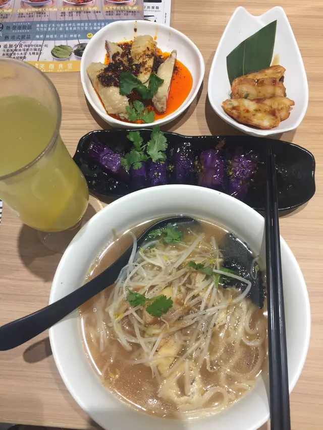 主打不一樣的車仔麵,皆因食材新鮮,而且夠哂創意,加上無味精湯底,長長嘅點餐紙,咩都啱食,有點難入手,見它嘅必食創意產品都幾吸引,雖然貴dd,都試一試😊:墨魚煎餅、九轉大腸、口水雞中翼、黑松露芒果分子蛋,呢幾味簡直係小菜版車仔餸,分子蛋可惜賣哂,最後揀咗煎餅、雞中翼、茄子😋😋配手工烏冬。