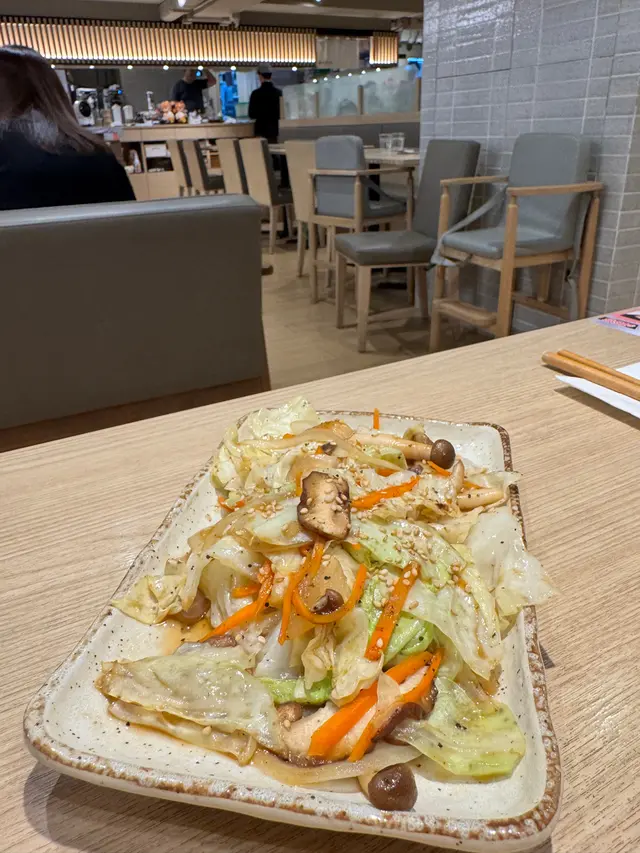 跟餐加 $35 「旬之野菜」:材料包括有椰菜同埋有少少芽菜、洋蔥絲、雜菌、芝麻,簡單一齊炒已經幾好食🤩