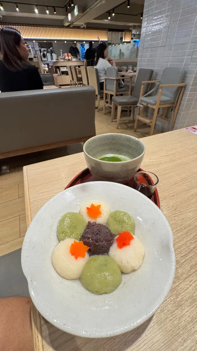 $52「鎌倉紅葉茶屋抹茶白玉」:白玉細細粒外觀圓轆轆都幾Kawaii 🤩,除咗白玉仲有綠玉估計係加咗抹茶🤣,白玉係由白玉粉做成,白玉粉係由もち米做成,即係嗰啲喺日本🇯🇵過年嘅時候食好煙韌mochi 糕🤩;呢度嘅白玉都做得好煙靭😋,完全唔甜,不過碗中間有 甜甜哋嘅 紅豆蓉 あんこ,撈埋一齊食幾好味🤩;如果仲覺得唔夠甜,有一小瓶 好甜嘅抹茶糖漿可以再加上去🤩;呢個甜品配一小碗「抹茶」,呢度嘅茶好似係嚟自「森半 morihan (創業 1836年)」,「森半」歷史悠久,有製作各種類型唔同嘅茶;呢碗「抹茶🍵」非常濃郁兼顏色碧綠,同甜點一齊食,更加突顯到 抹茶🍵嘅苦味澀味同鮮味🤩
