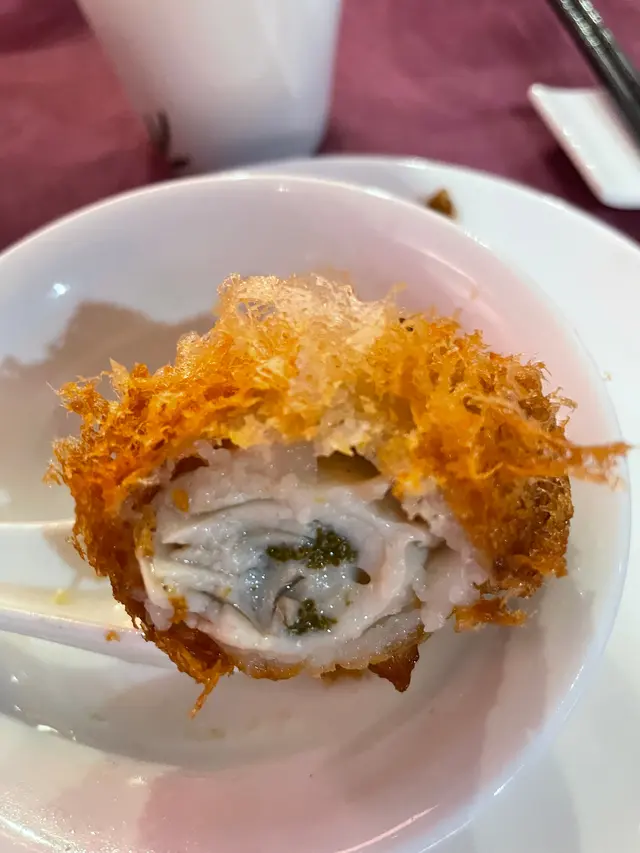 外邊脆漿炸得鬆化,內有層薄芋泥,而生蠔肥美多汁。