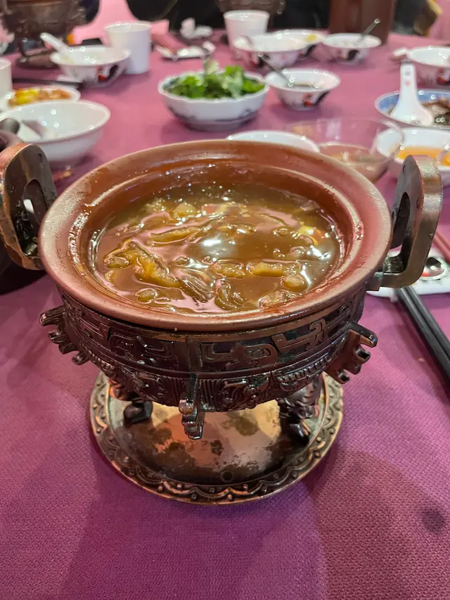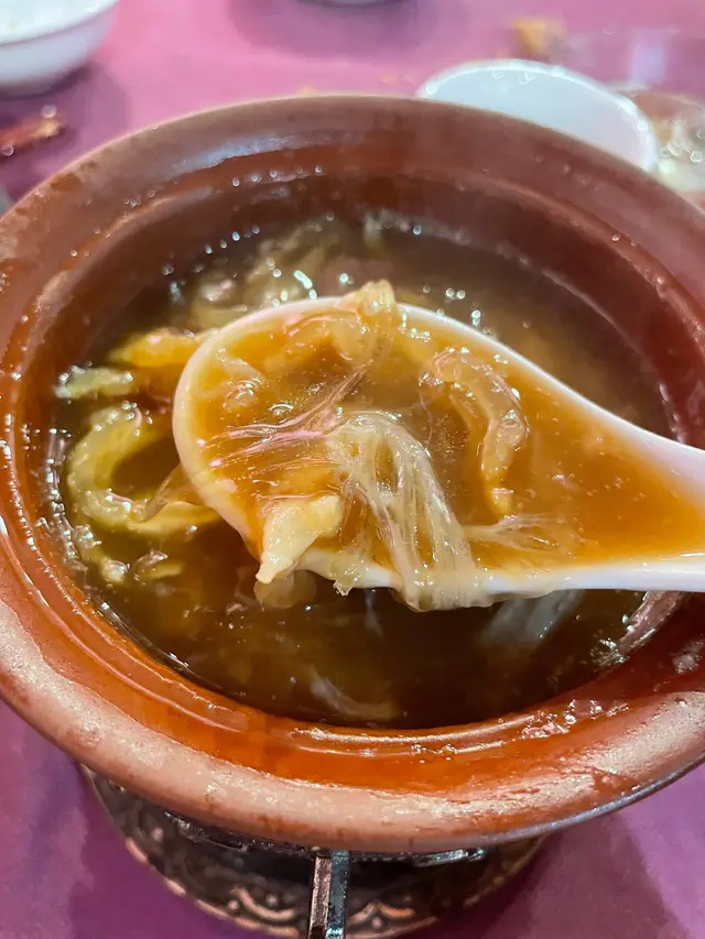 用鼎盛盛載花膠魚翅好有儀式感。湯中有魚翅,花膠,質地濃稠,食到最尾個匙都係熱。