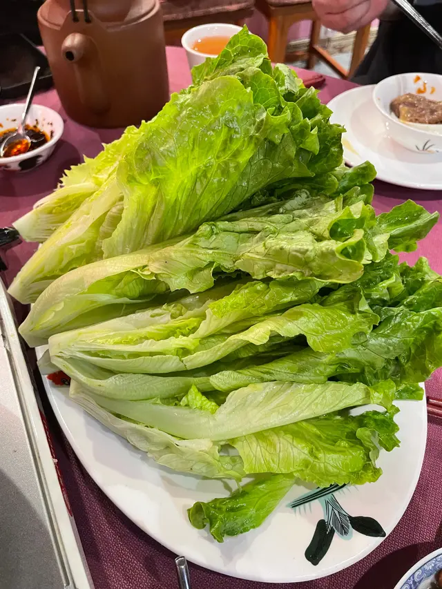 唐生菜吸收曬羊腩汁,有啲油分,就冇咗股羶味,唐生菜脆口。