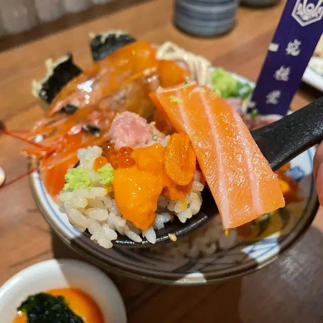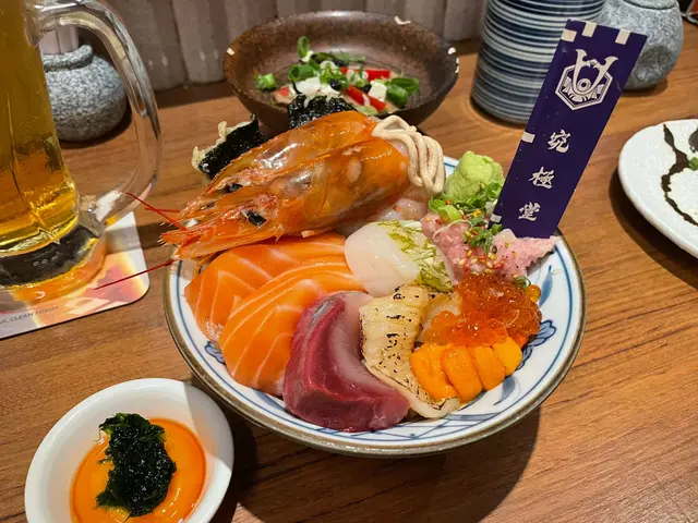 再嚟重頭戲 「究極丼」! 睇個名就知係鎮店之寶,一上枱...嘩!個賣相誇張到爆!個碗大到呢~上面鋪到滿一滿,勁澎湃!有齊厚切三文魚、油甘魚、帶子、赤蝦、蟹籽、玉子,仲有啲我唔記得嘅(因為太多款哈哈!)。重點係全部刺身都好新鮮,三文魚肥美甘香,帶子鮮甜到痹,赤蝦爽彈冇霉味,連啲醋飯都煮得粒粒分明,酸度適中,撈埋啲魚油同蟹籽一啖入口... 真係「究極」嘅幸福啊!份量絕對夠晒飽,男仔食都未必清得晒,性價比高到笑!