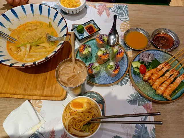 食材好豐富,有蝦肉/豆卜/糖心蛋/通菜/魚片/芽菜/魚旦,麵底是摻摻,米粉+油麵。我要高度讚賞他的湯底,椰香滿滿,辣味不突出,所以不吃辣的都沒問題,想吃辣的也不怕,他有配一小碟的辣椒油跟桔仔,加上桔仔風味即時東南亞風味就出來了。