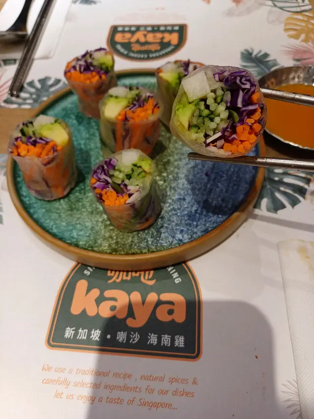 色彩豐富,上桌時視覺已經好好。食物好多好健康,牛油果/紅蘿蔔/青瓜/沙葛/紫椰菜,他配的醬汁,完全沒想過是芒果🥭醬,入口非常喜出望外,好夾超級好食,第一次食飯是連醬汁都清底的。
