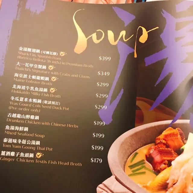 火鍋的精髓在於湯底,看到餐牌上推薦金湯腿翅鍋,價值$399一個湯底,眾多湯底中這個湯底是最貴的,一般湯底都是一百多元而已,究竟這個湯底有什麼特別?真的值這個價錢?侍應又高度推介,好,一於試試吧!